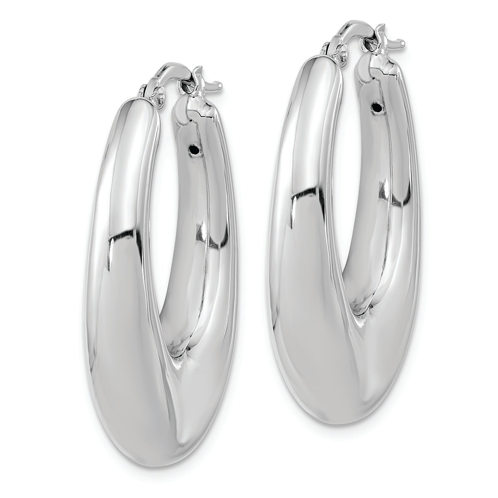 Sterling Silver Polished Rhodium-plated Oval Hollow Hoop Earrings