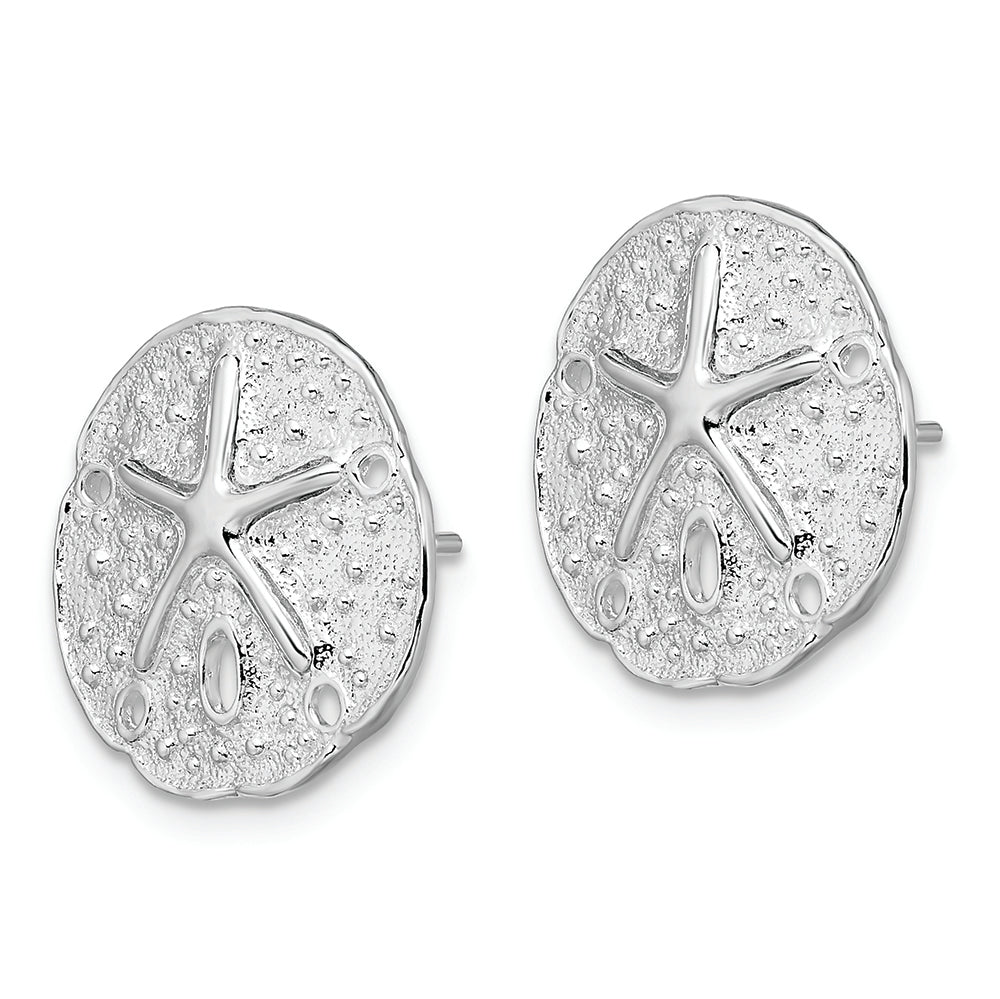 Sterling Silver Polished Small Sand Dollar w/Starfish Post Earrings