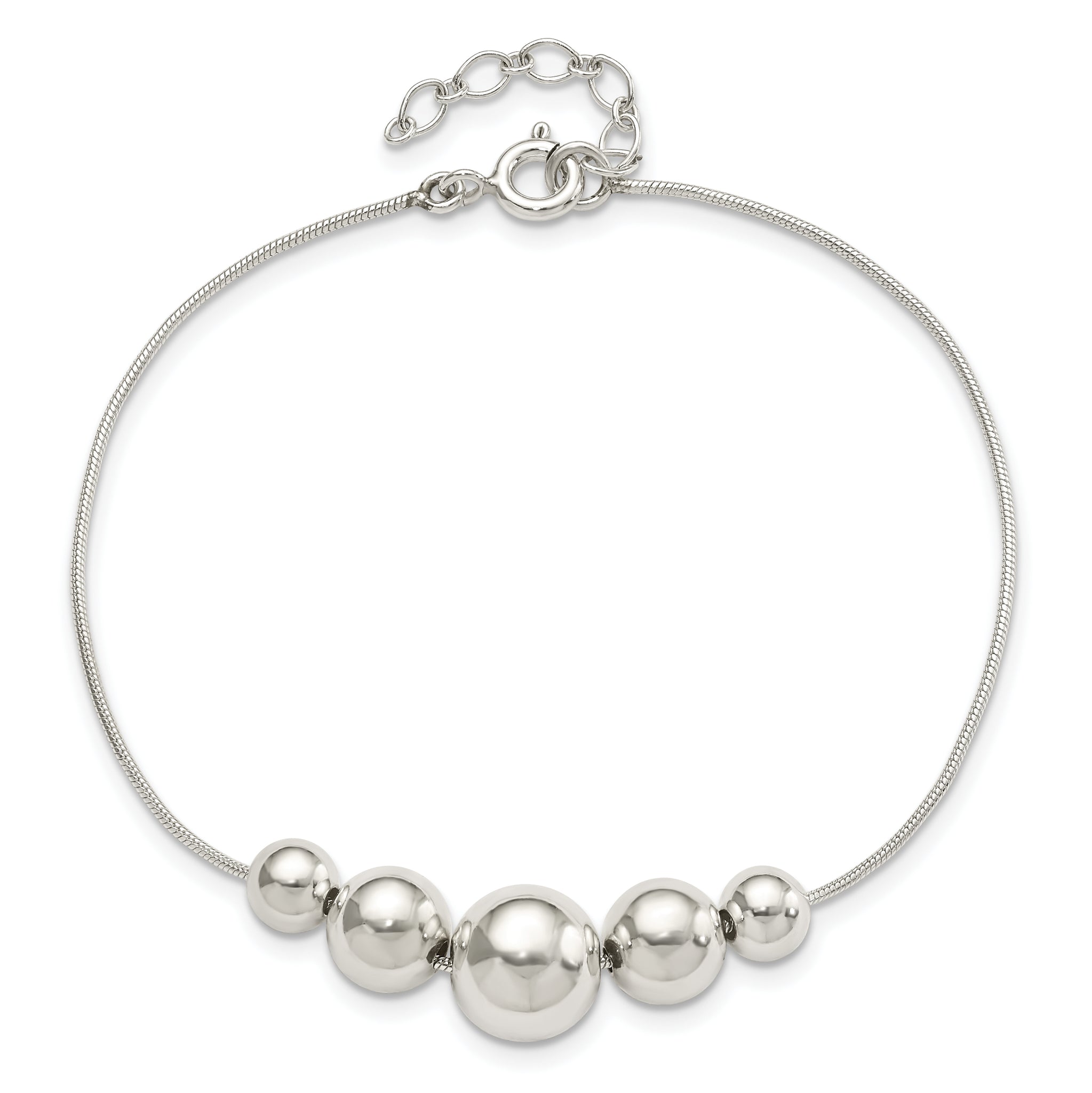 Sterling Silver Polished Tapered Round Bead w/1 in ext. Bracelet