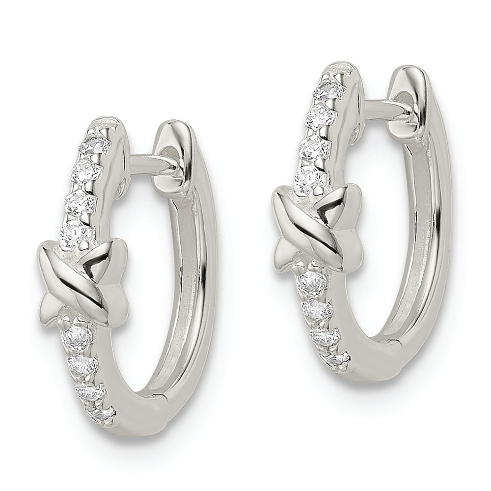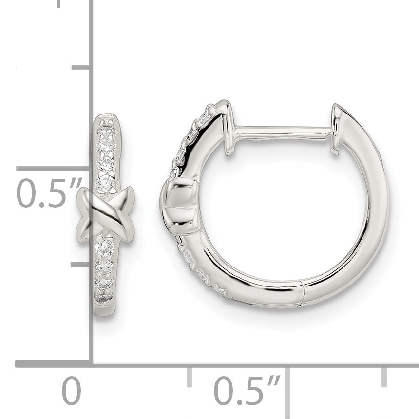 Sterling Silver Polished X CZ Hinged Hoop Earrings