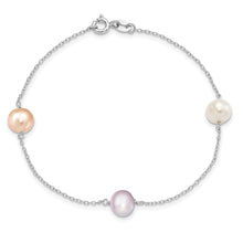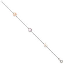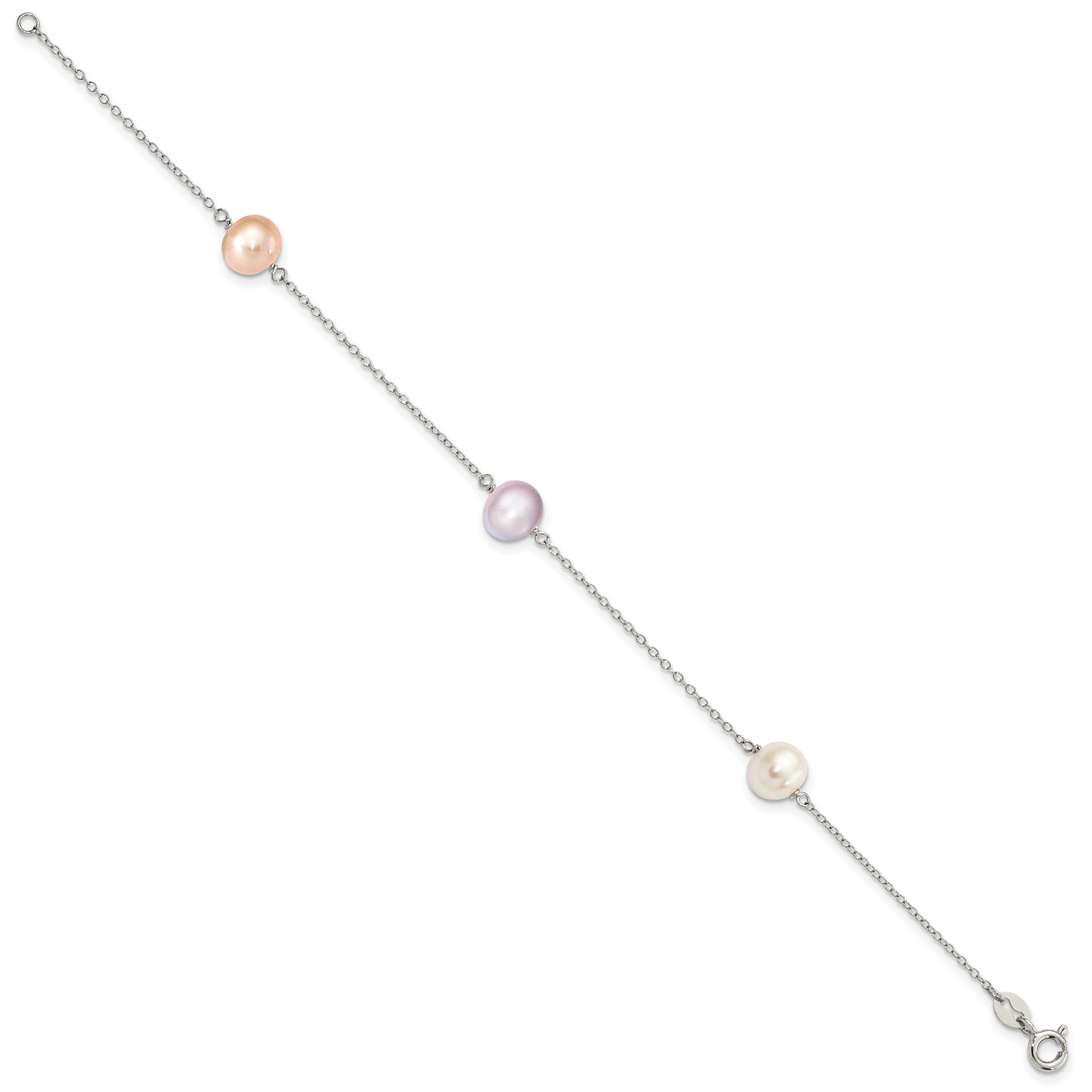Sterling Silver Rh-p 3-stat 7-8m Wht/Pink/Pur Semi-round FWC Pearl Bracelet