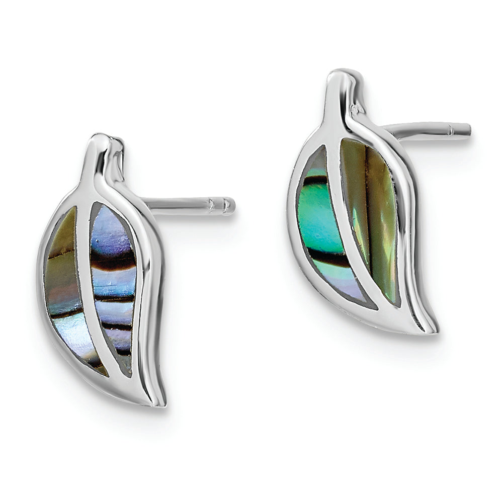 Sterling Silver RH-plated Abalone Leaf Post Earrings