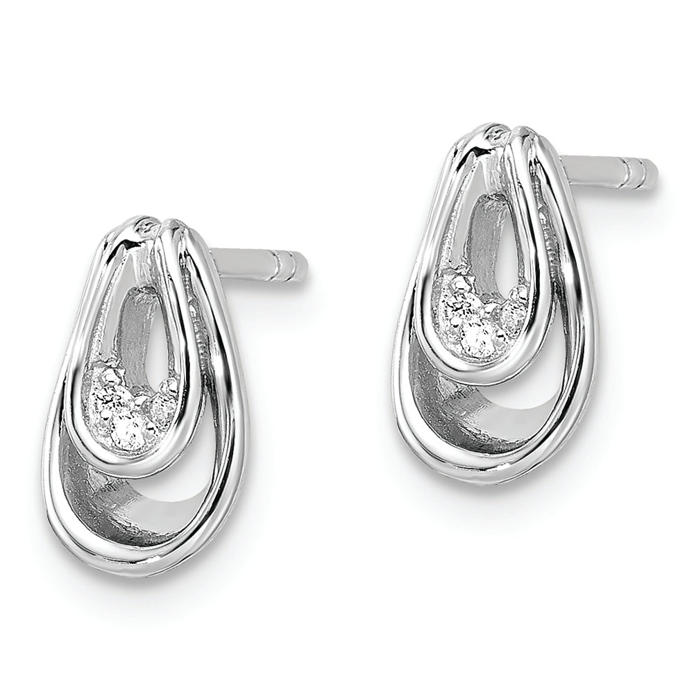 Sterling Silver RH Polished CZ Post Dangle Earrings