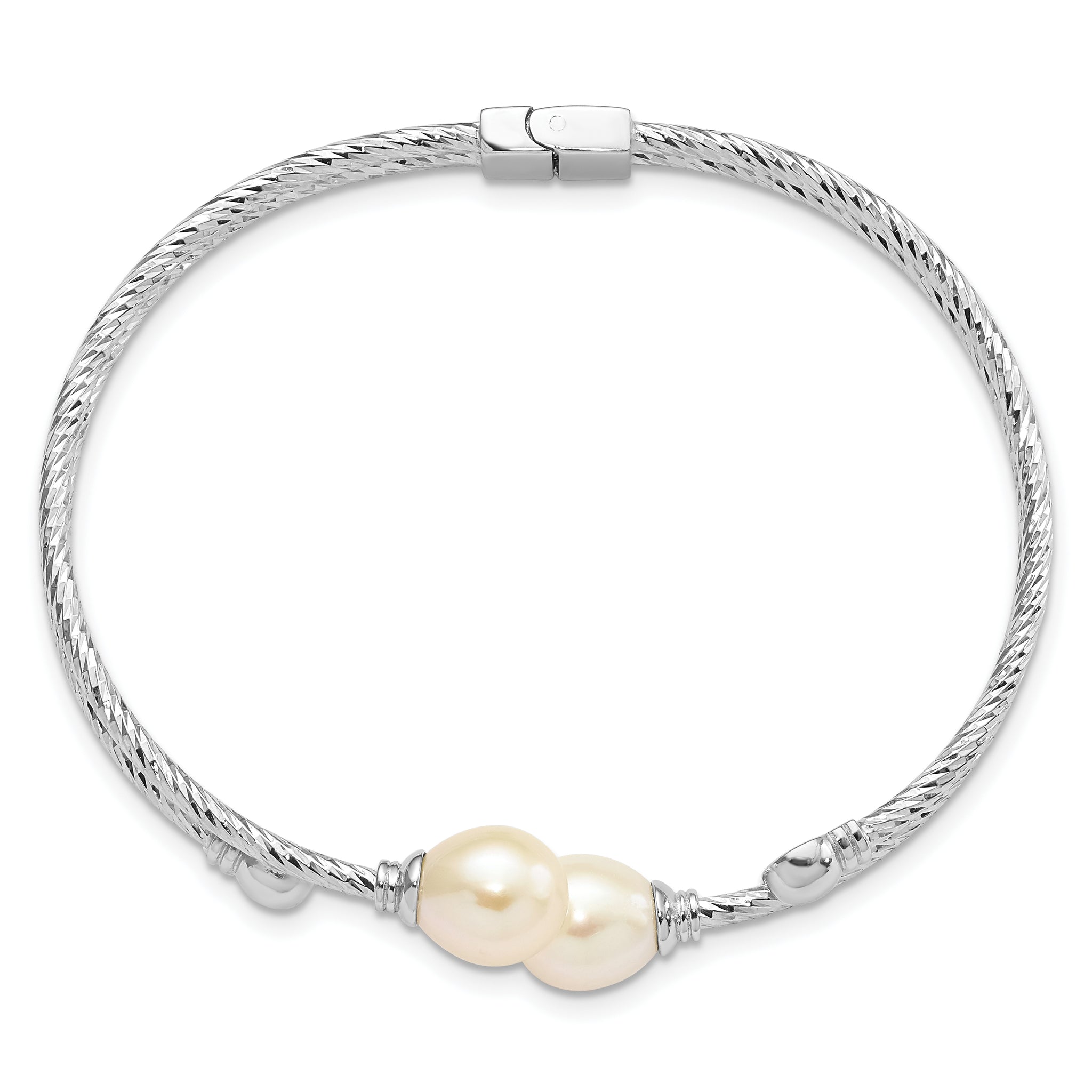 Sterling Silver Rhod-pl 8x10mm White Teardrop FWC Pearl Hinged Bangle