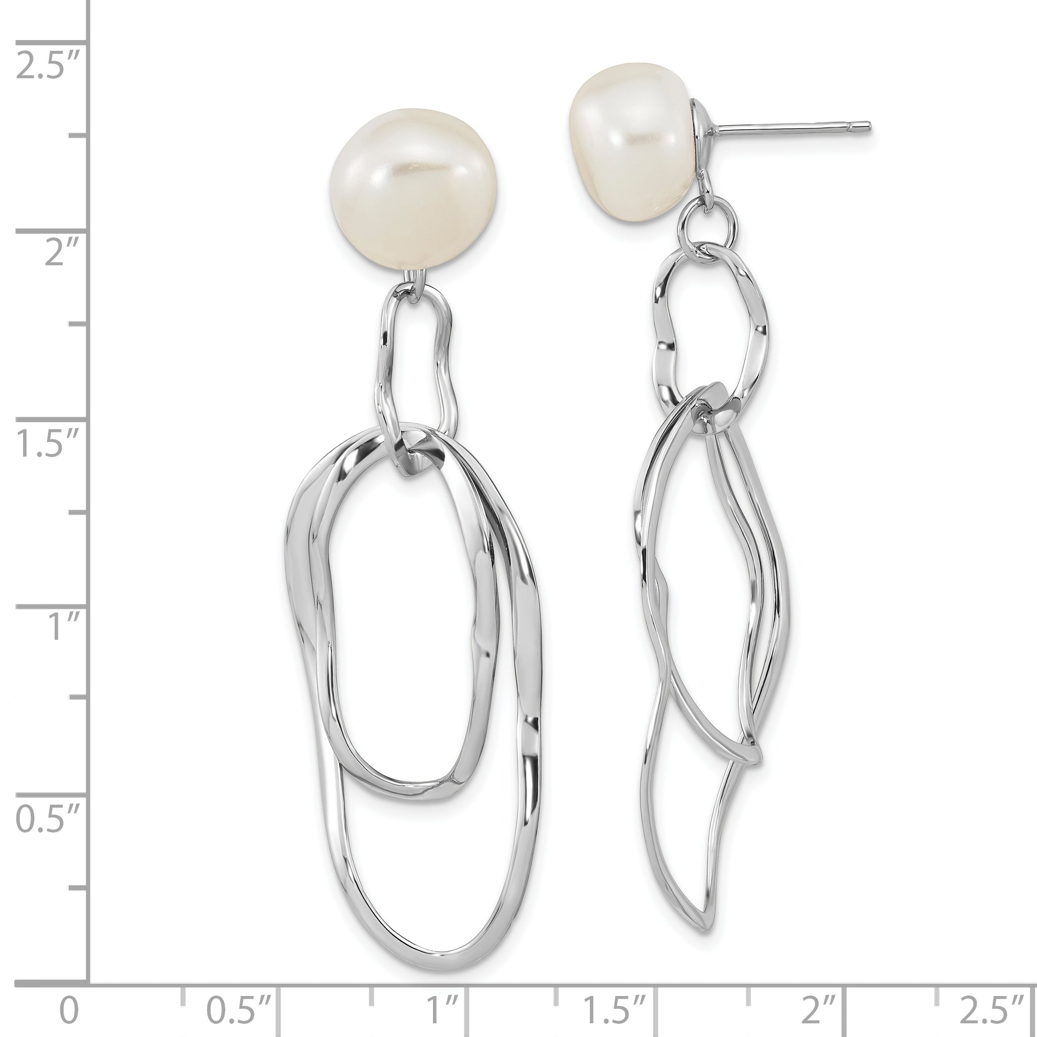 Sterling Silver Rhod-plated 10-11mm White Baroque FWC Pearl Dangle Earrings
