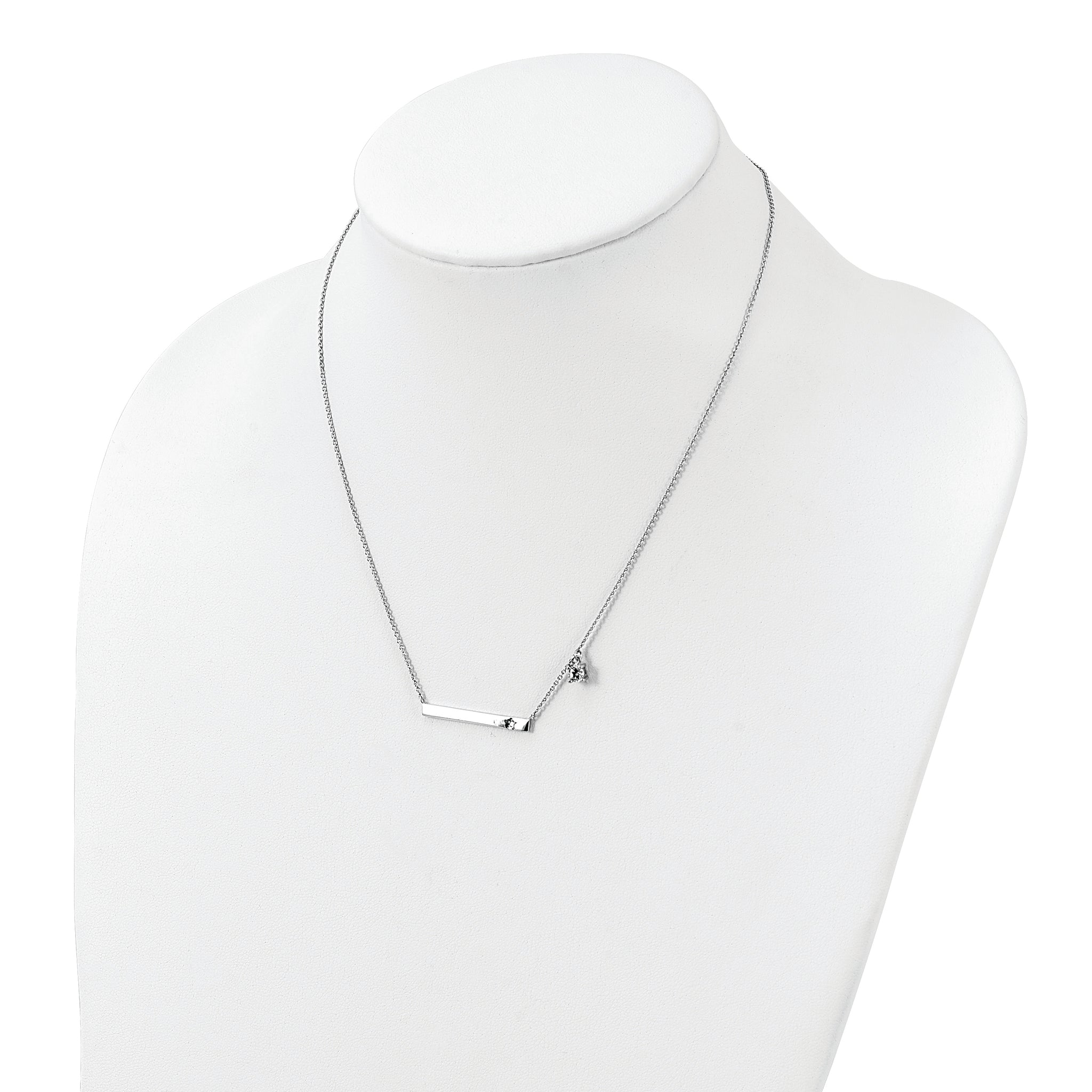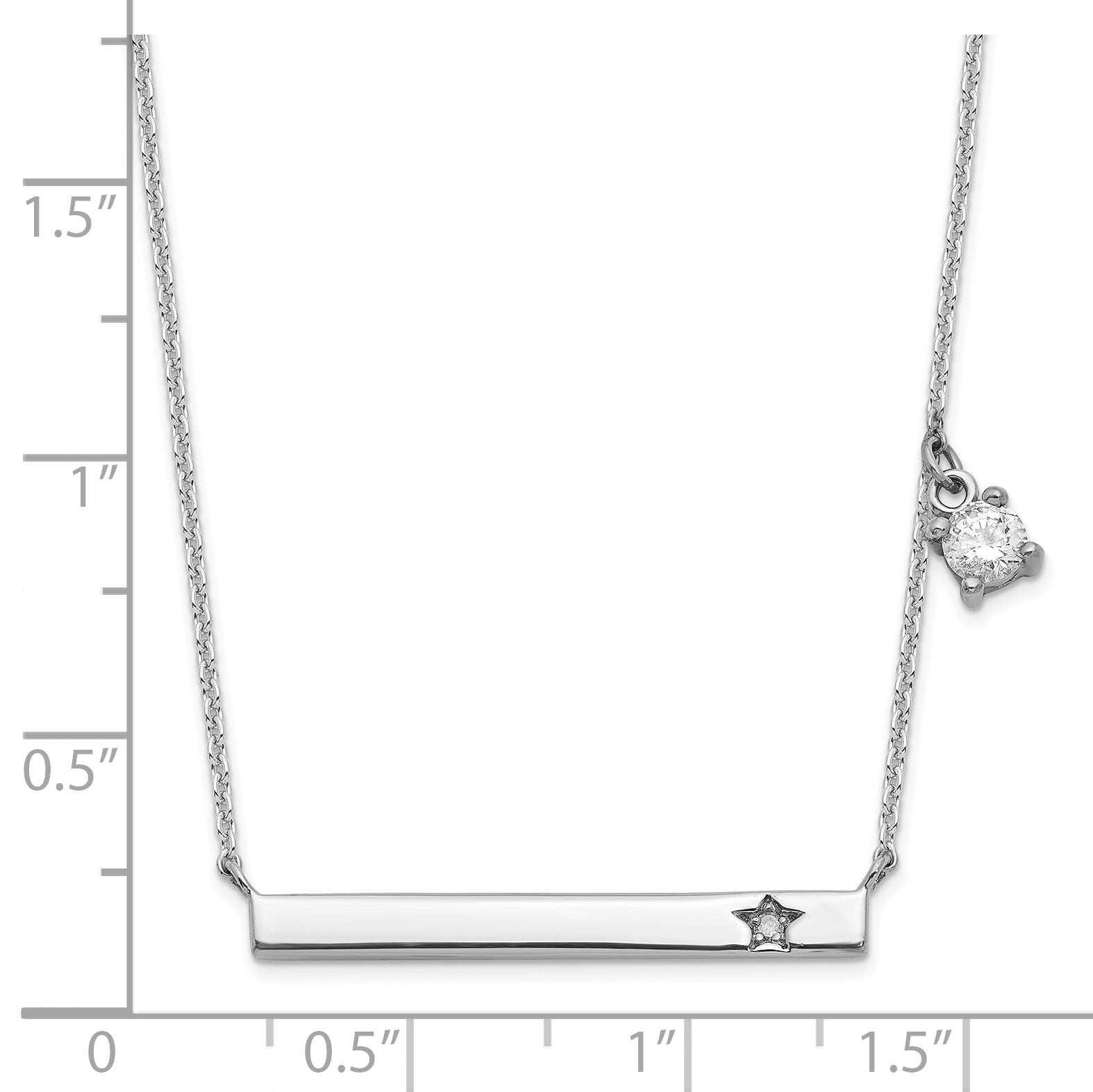 Sterling Silver Rhod-plated CZ and Diamond w/1.25in ext. Bar Necklace