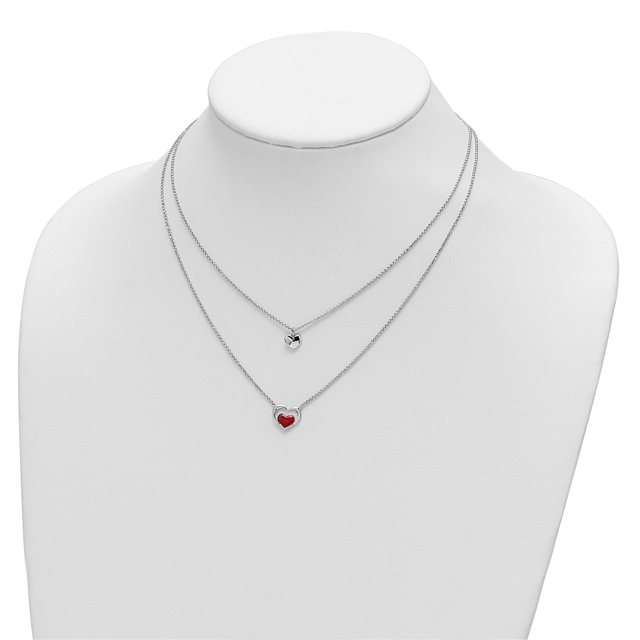 Sterling Silver Rhodium-plate Enamel Heart 2-Strand w/1in Ext Necklace