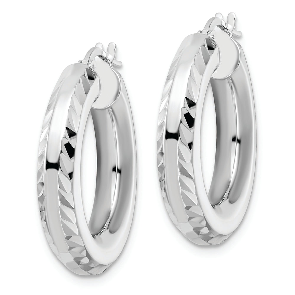 Sterling Silver Rhodium-plated 5x24mm D/C Octagon Tube Hoop Earrings