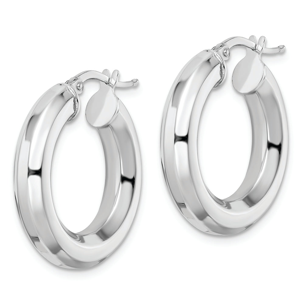 Sterling Silver Rhodium-plated 5x24mm Octagon Tube Hoop Earrings