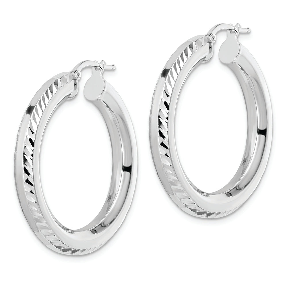 Sterling Silver Rhodium-plated 5x34mm D/C Octagon Tube Hoop Earrings