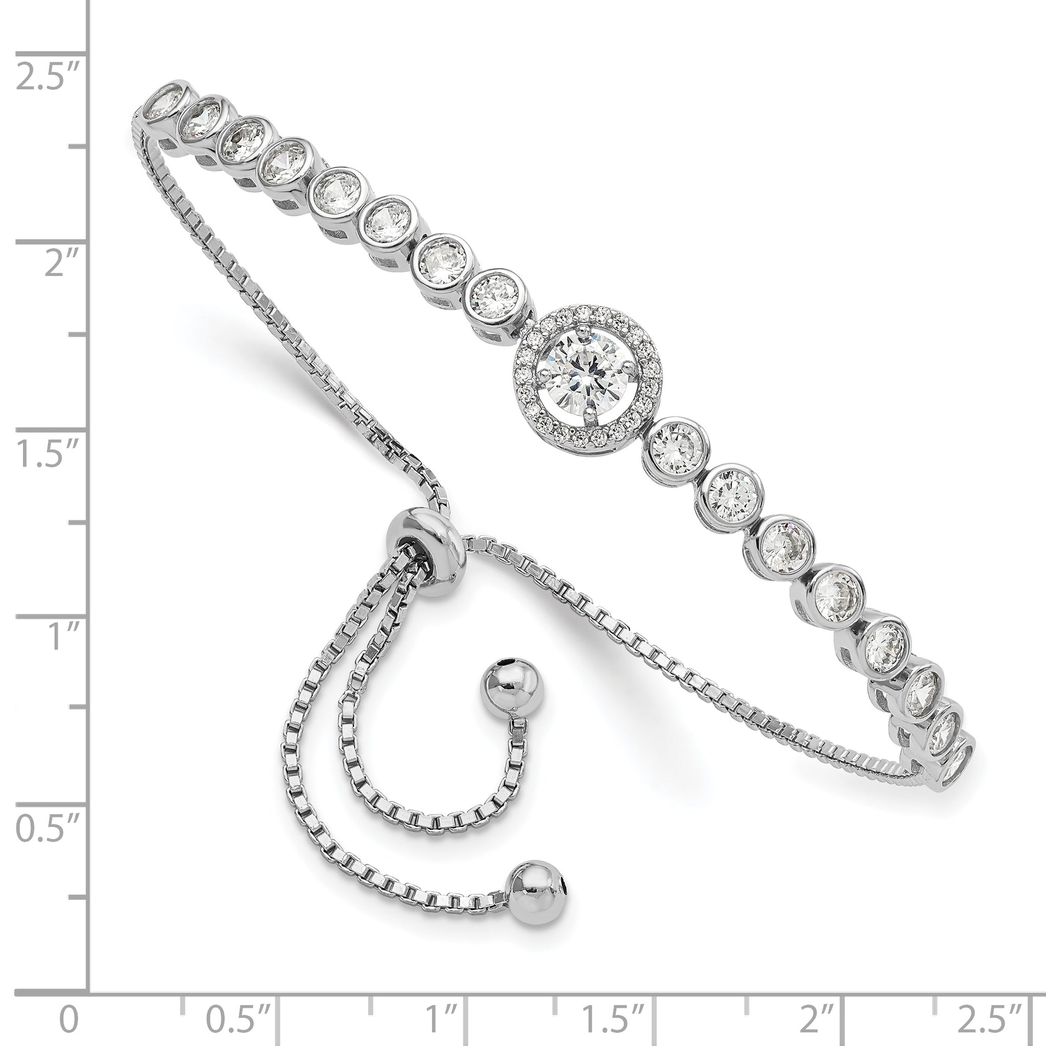 Sterling Silver Rhodium-plated Bezel Set CZ & Halo CZ Adjustable Bracelet