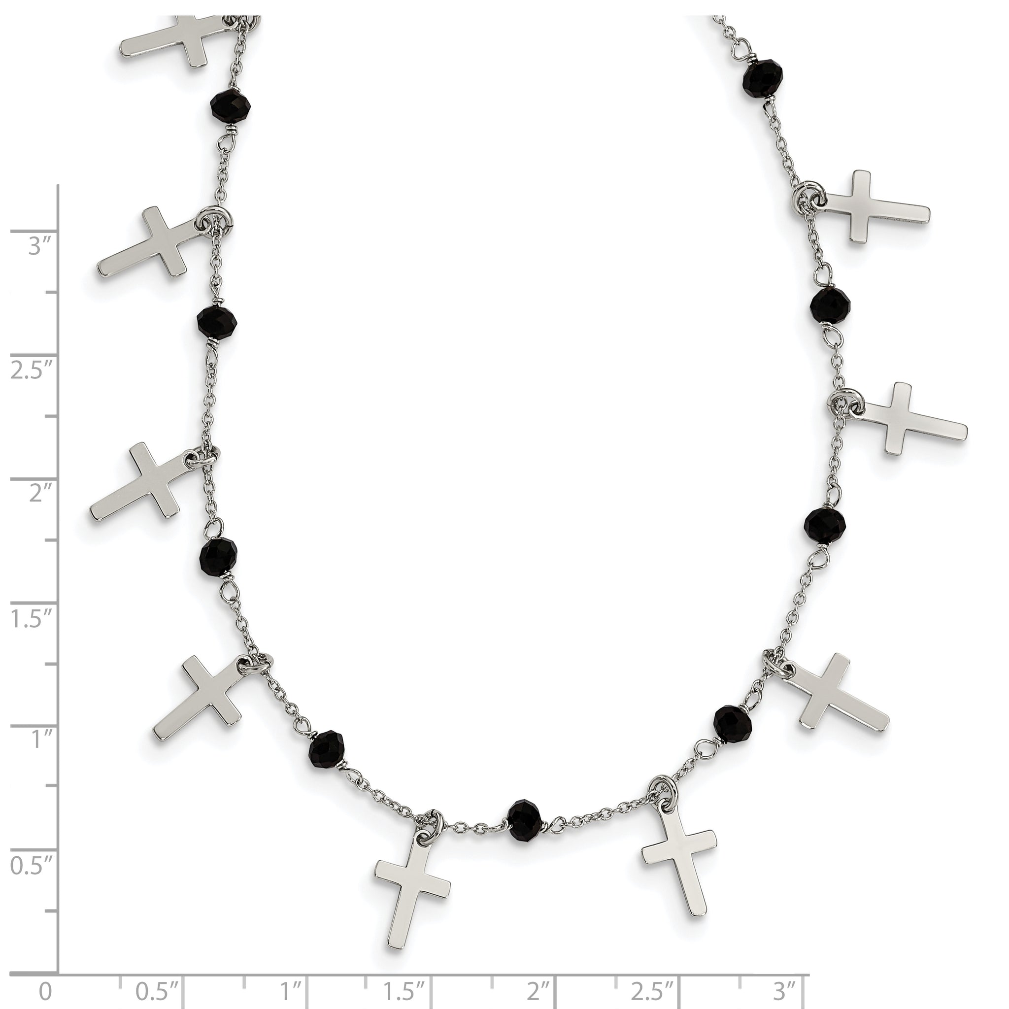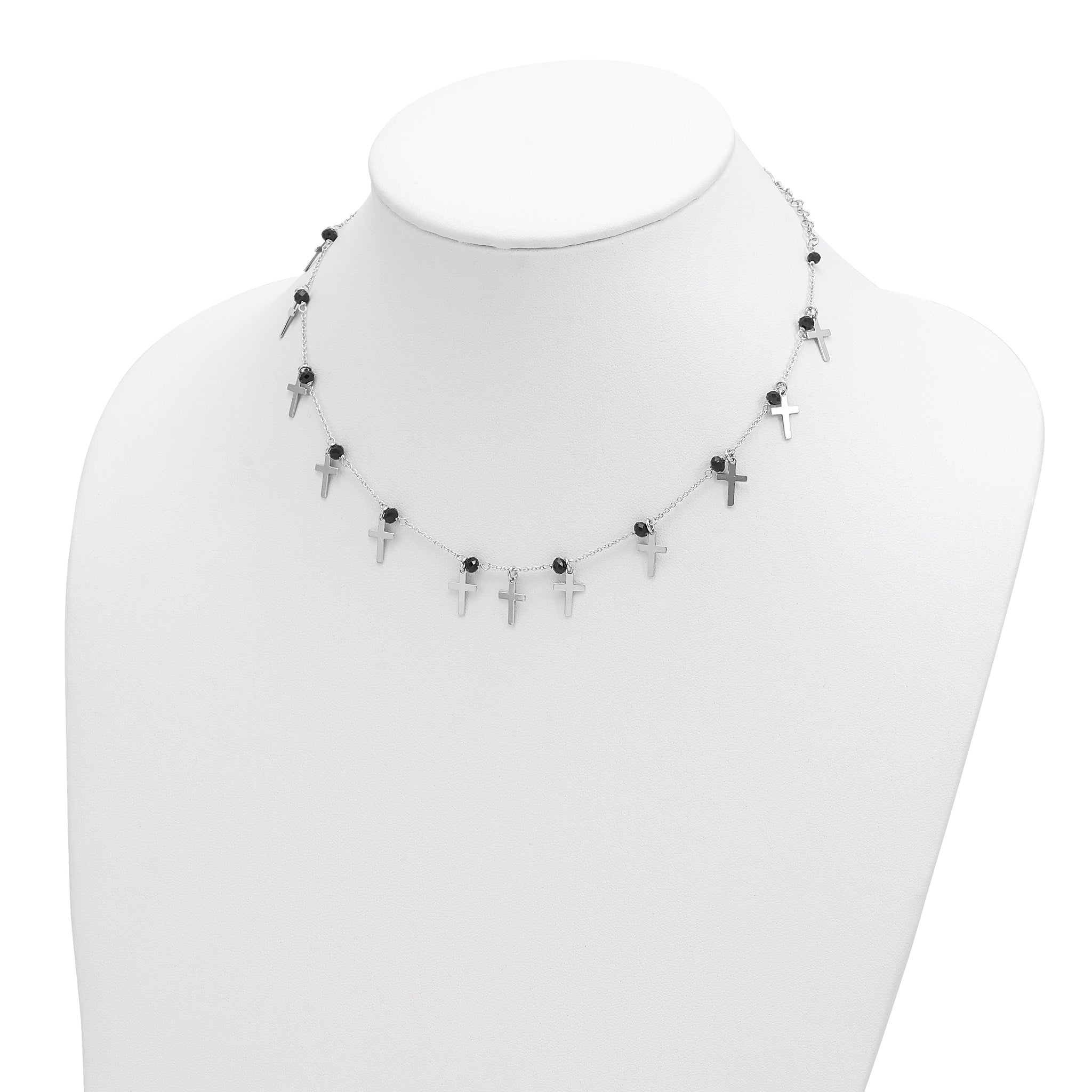 Sterling Silver Rhodium-plated Black Crystal Cross w/ 1.25in ext. Necklace