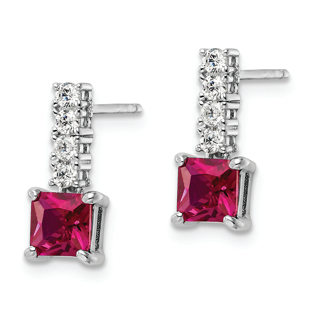Sterling Silver Rhodium-plated Created Ruby and CZ Post Dangle Earrings