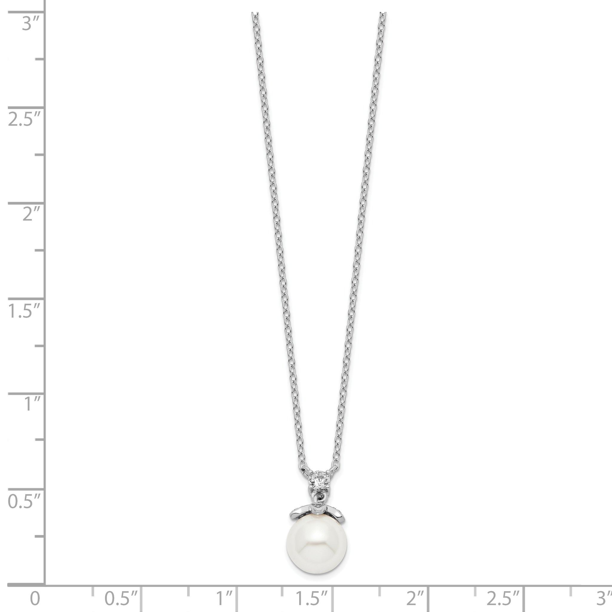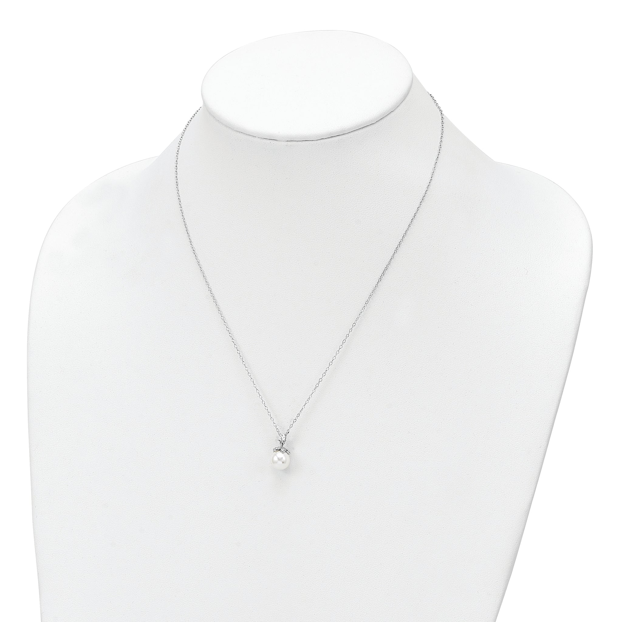 Sterling Silver Rhodium-plated CZ and Glass Bead Necklace