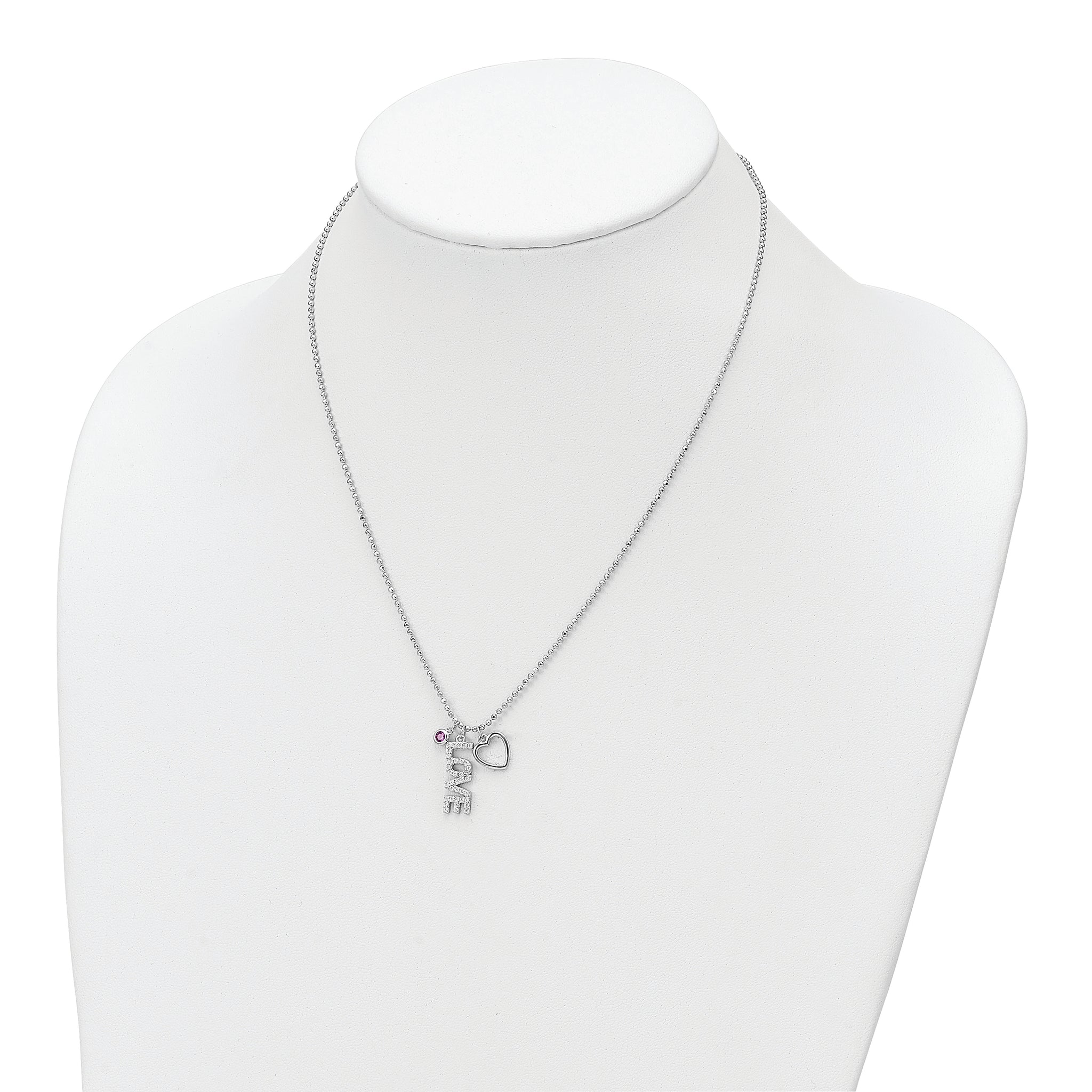 Sterling Silver Rhodium-plated CZ and Heart D/C Bead Chain Necklace