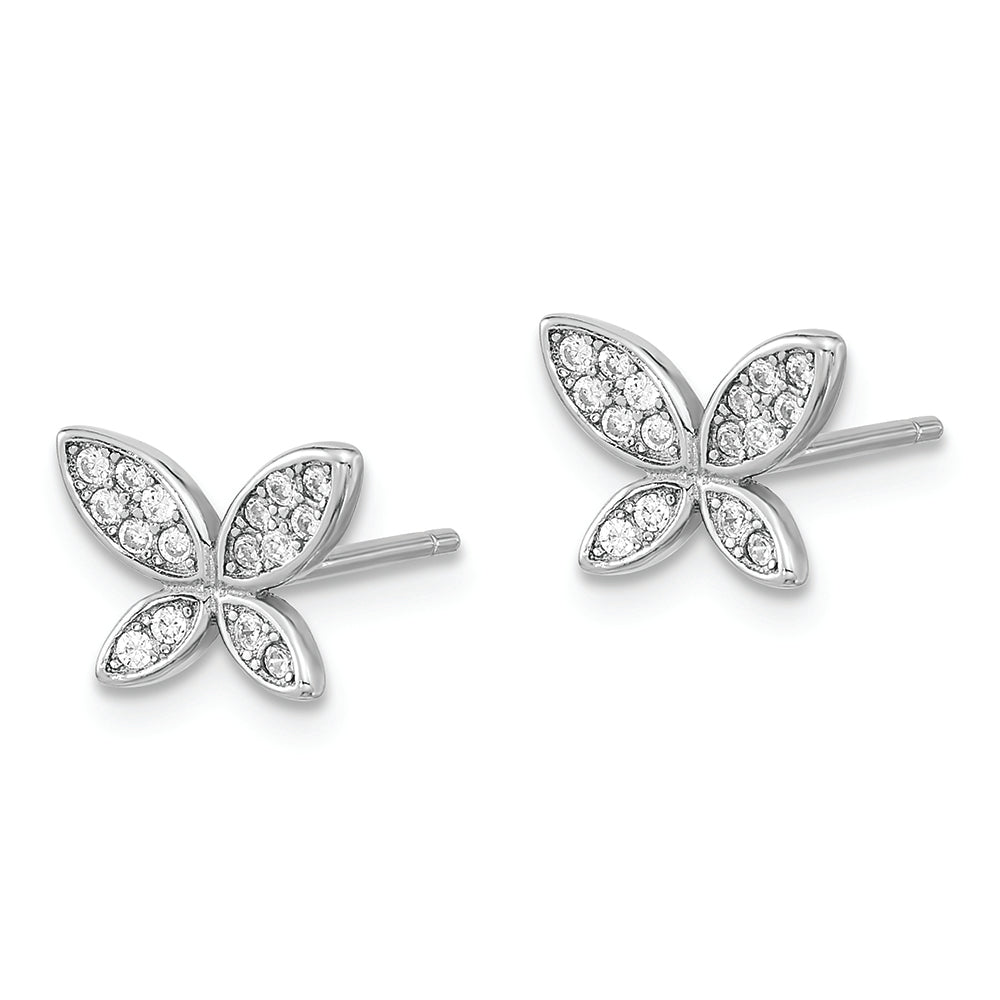 Sterling Silver Rhodium-plated CZ Butterfly Post Earrings