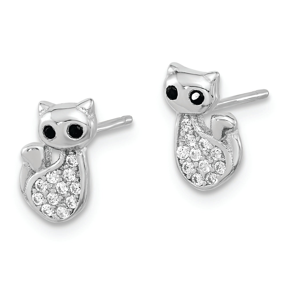 Sterling Silver Rhodium-plated CZ Cat Post Earrings
