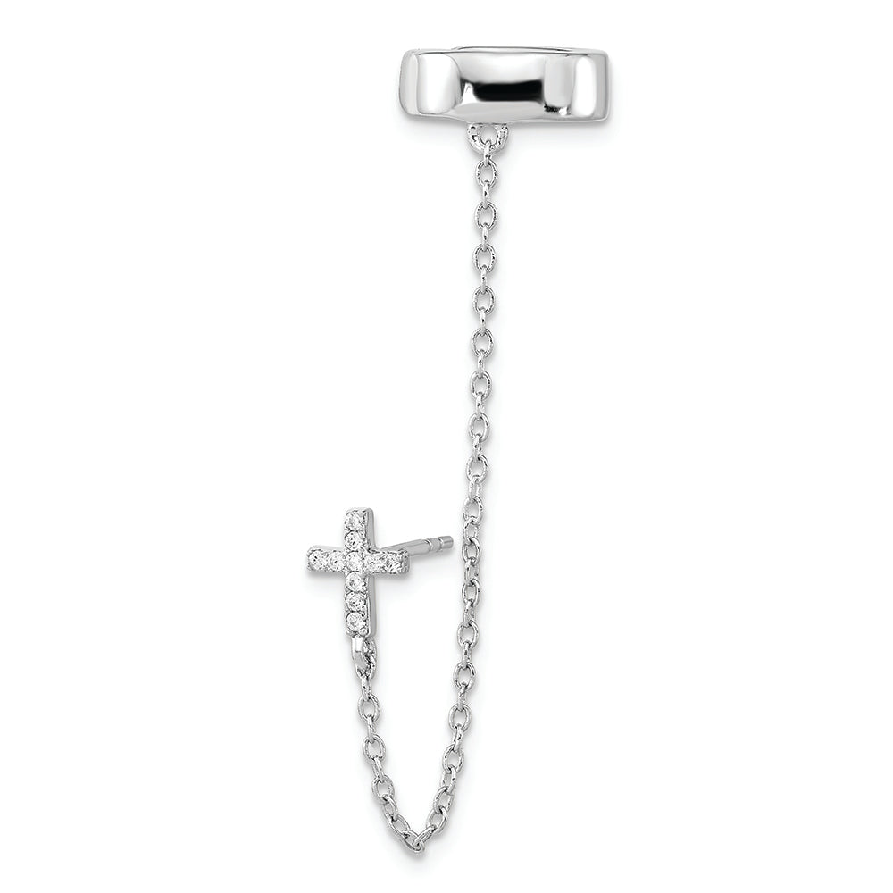 Sterling Silver Rhodium-plated CZ Cross 1 Individual Post with Cuff Earring