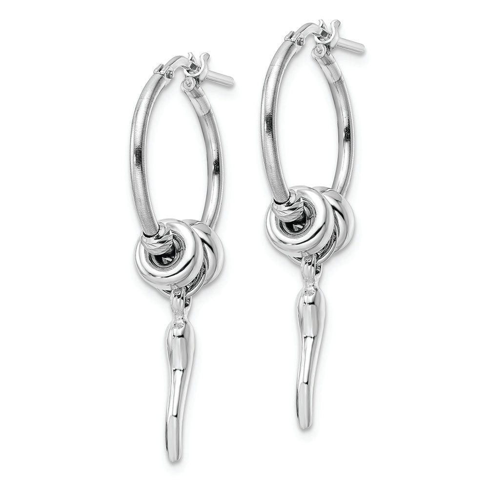Sterling Silver Rhodium-plated D/C Bead Italian Horn Dangle Hoop Earrings
