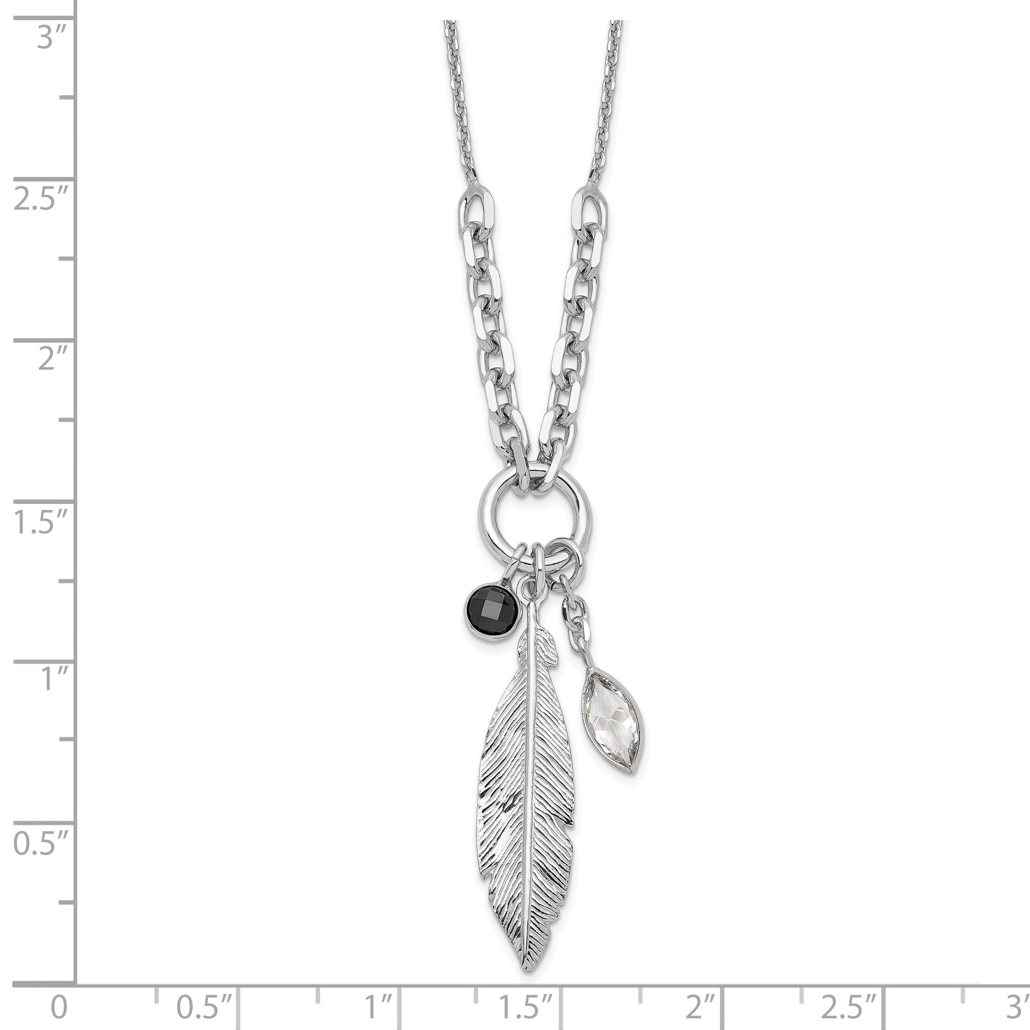Sterling Silver Rhodium-plated Feather and CZ w/1 in Ext Necklace