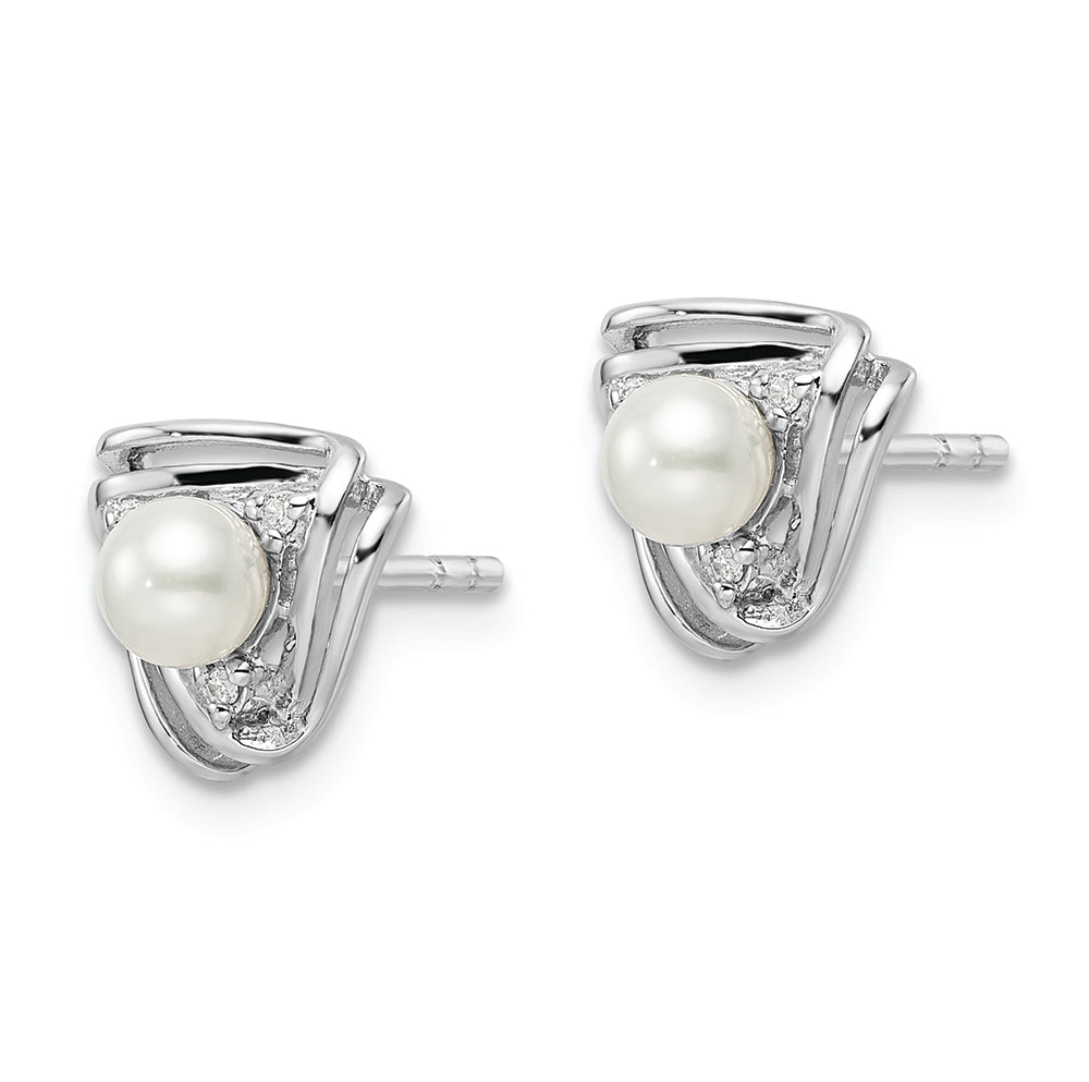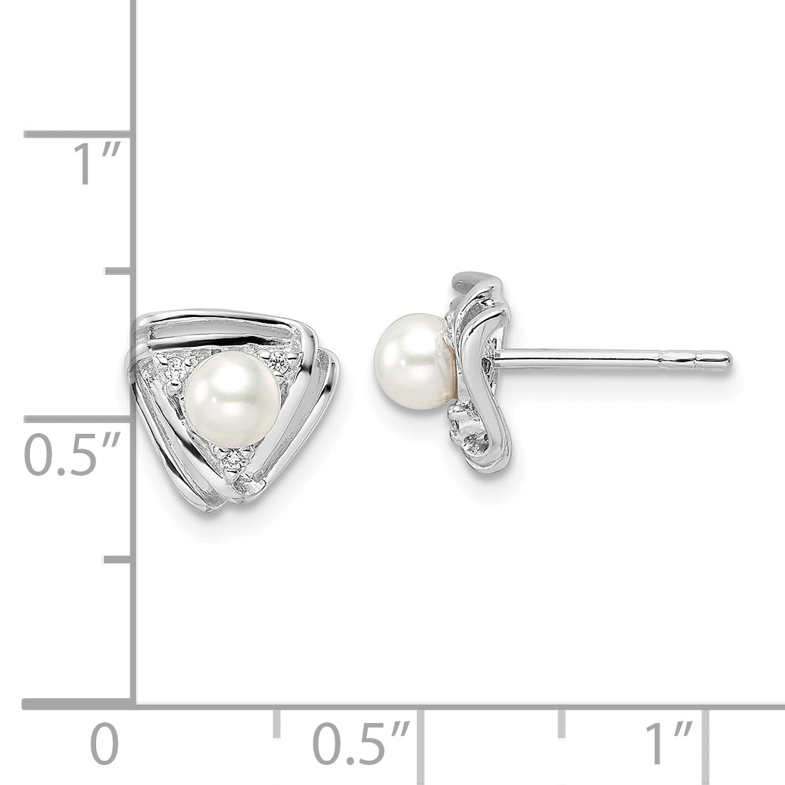Sterling Silver Rhodium-plated FWC Pearl and CZ Triangle Post Earrings
