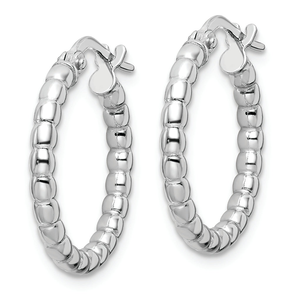 Sterling Silver Rhodium-plated Polished 2.25mm Beaded Hoop Earrings