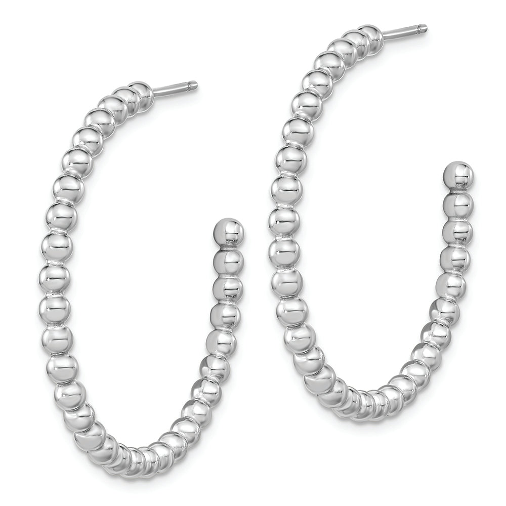 Sterling Silver Rhodium-plated Polished Beaded Hoop Post Earrings