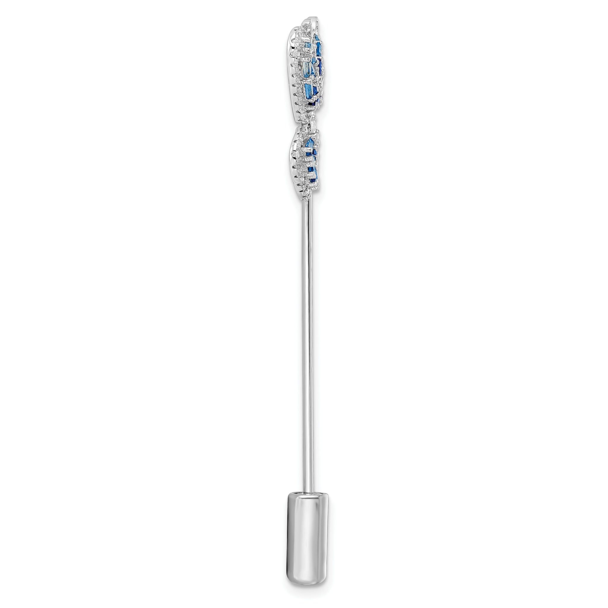Sterling Silver Rhodium-plated Polished Blue and Clear CZ Butterfly Pin