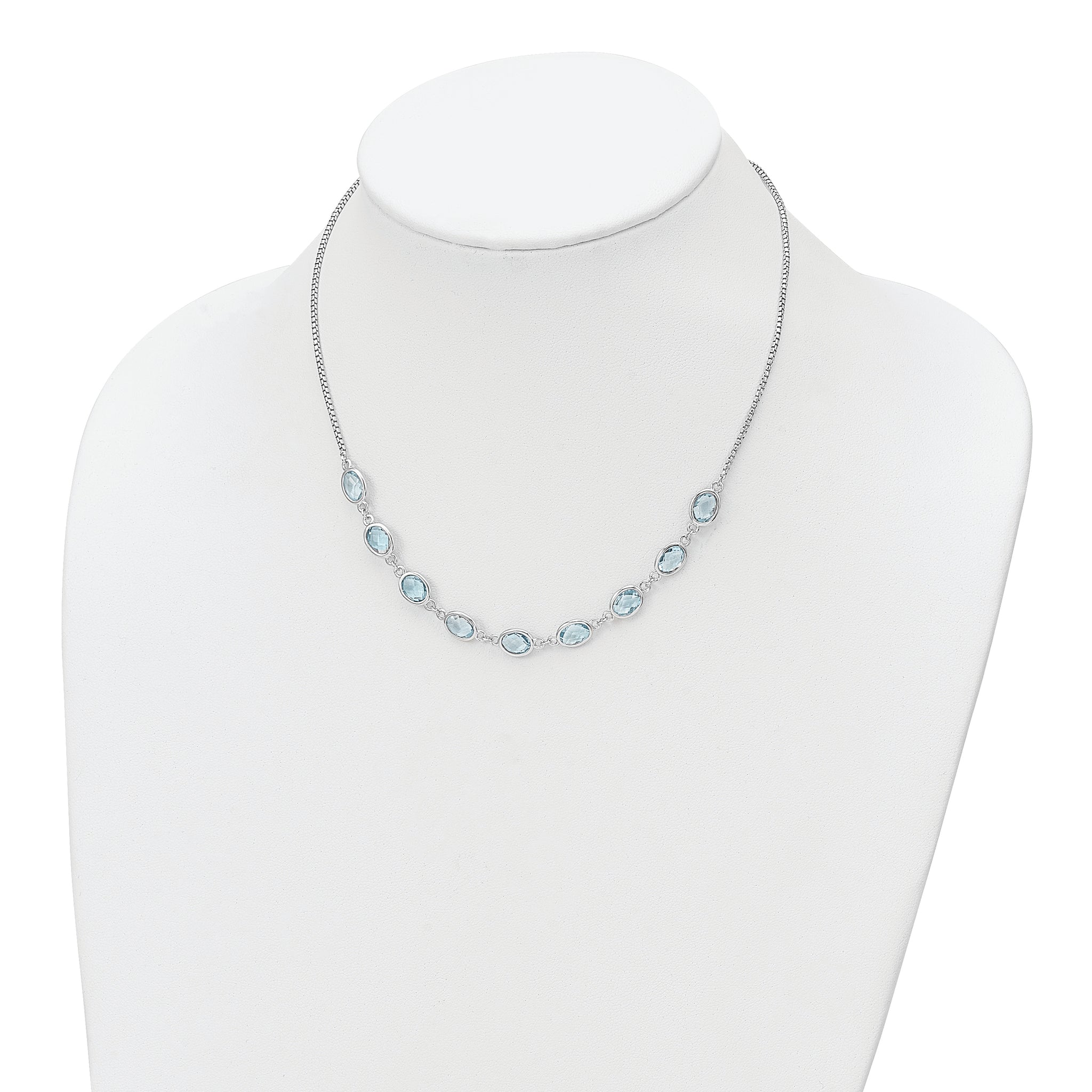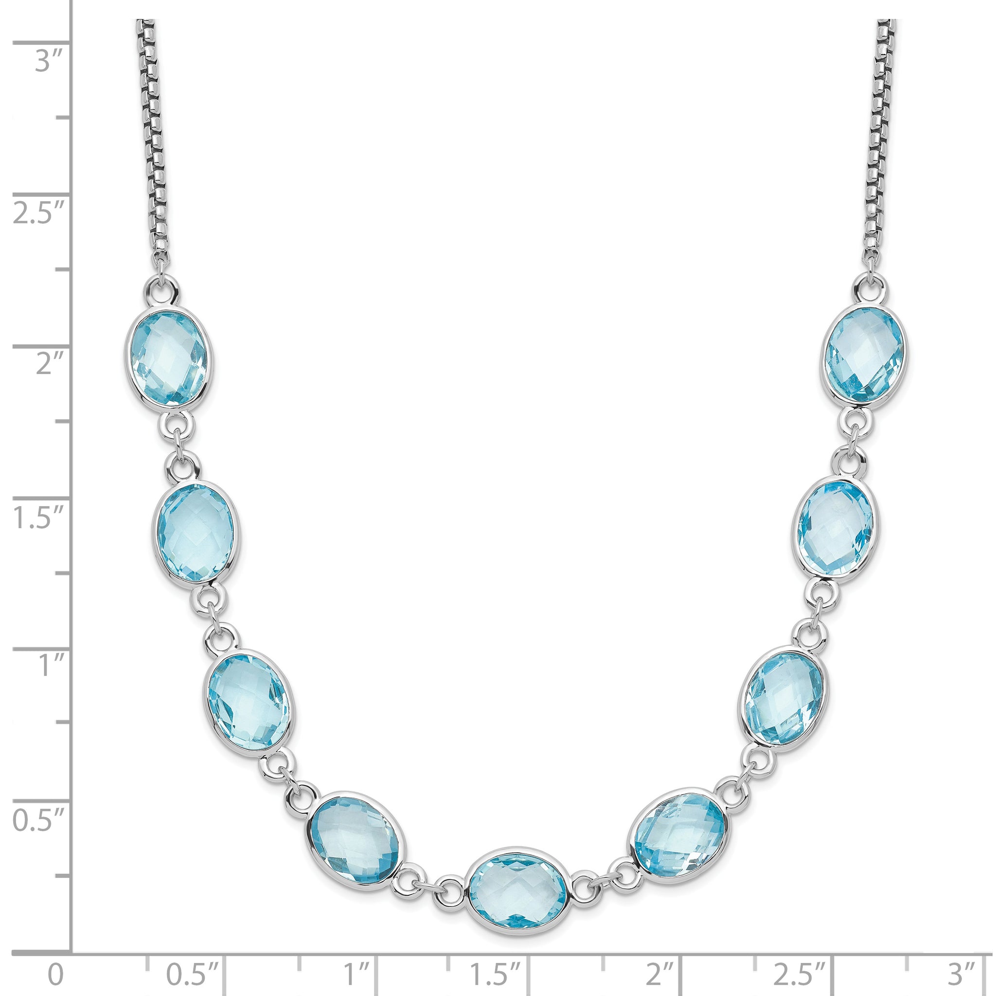 Sterling Silver Rhodium-plated Polished Blue Topaz w/2 in ext. Necklace