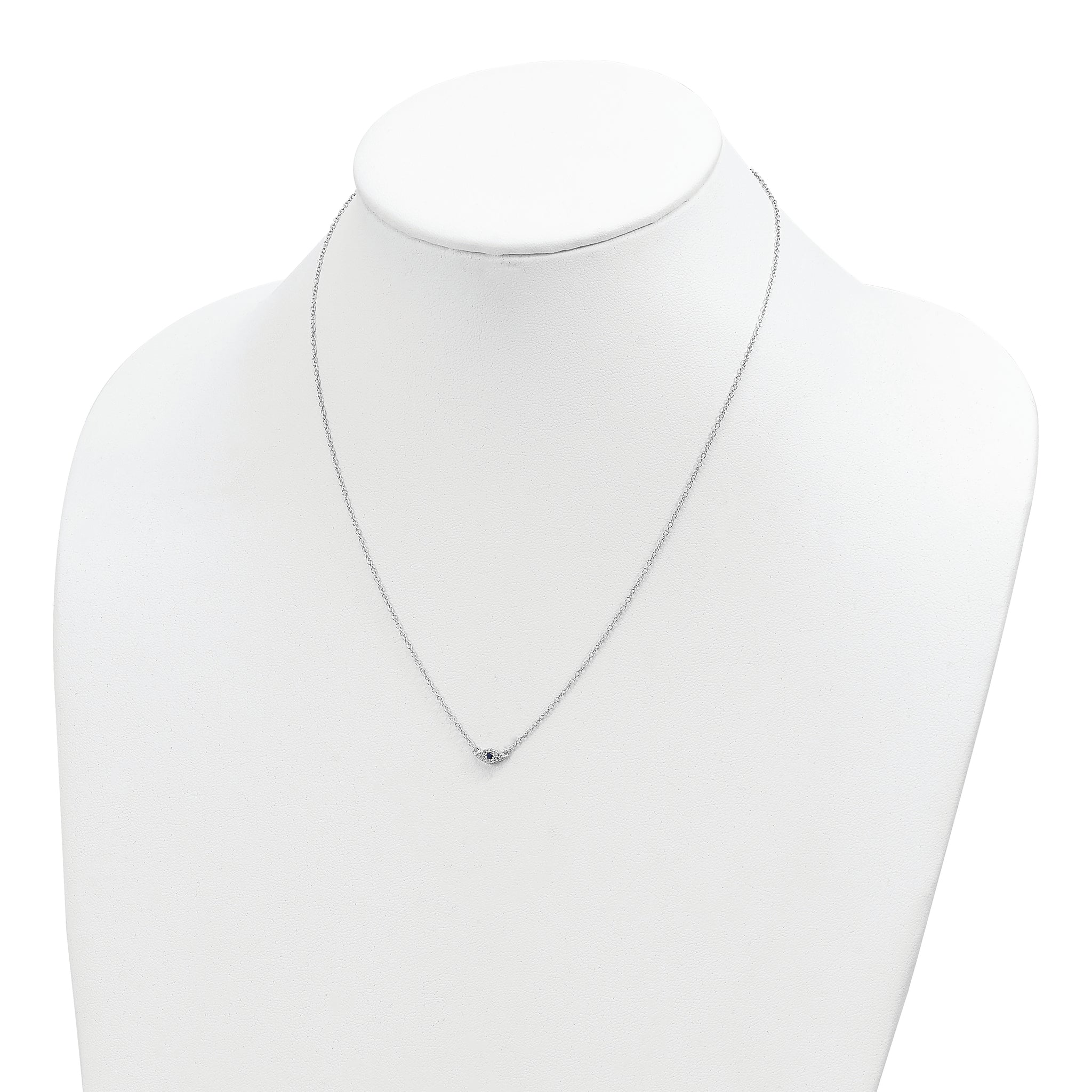 Sterling Silver Rhodium-plated Polished Blue & White CZ Eye Necklace