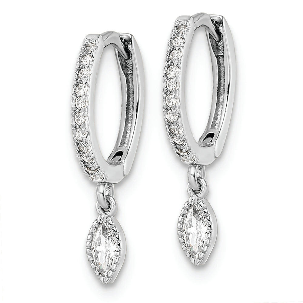 Sterling Silver Rhodium-plated Polished CZ Hinged Hoop Earrings