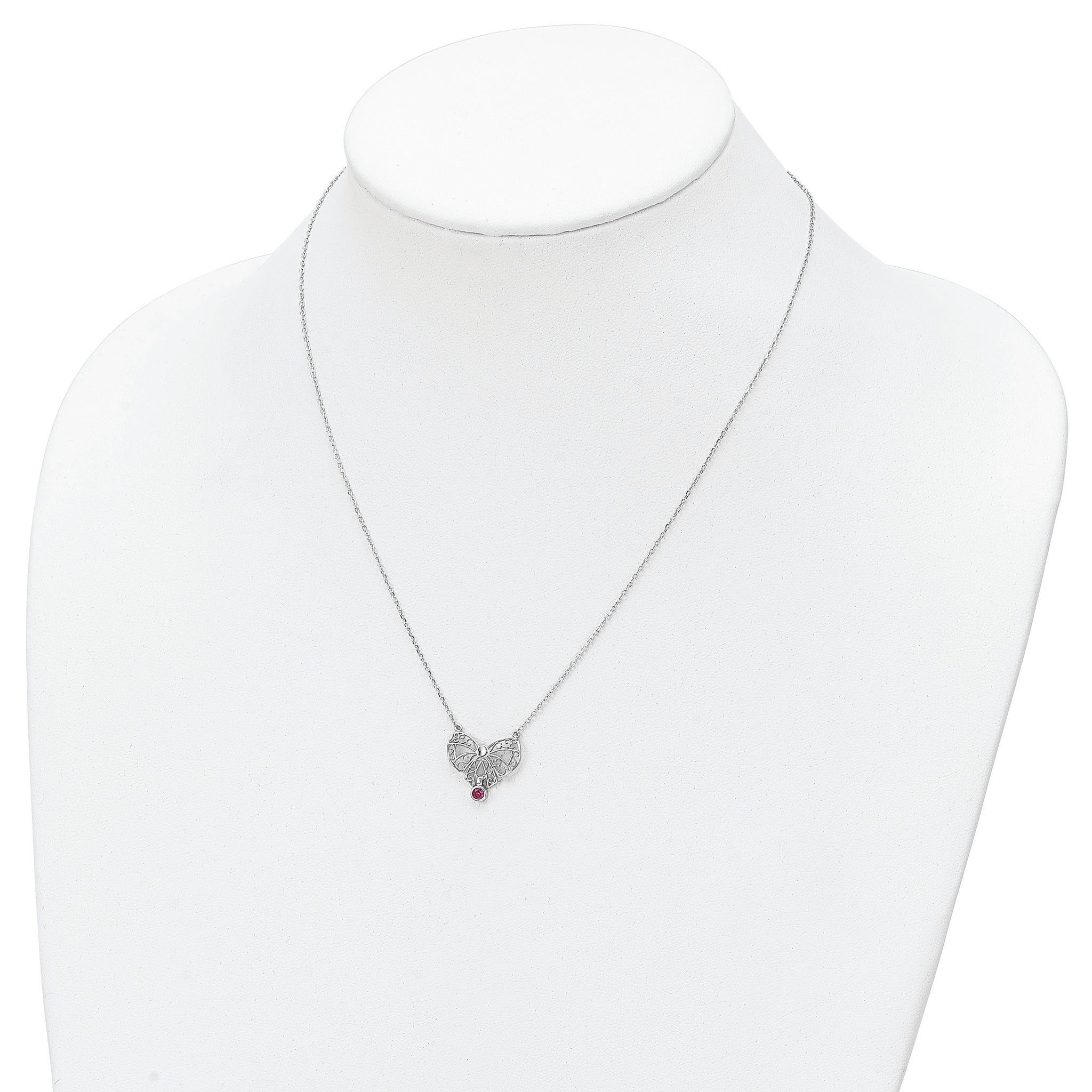 Sterling Silver Rhodium-plated Polished July Bow CZ Birthstone Necklace