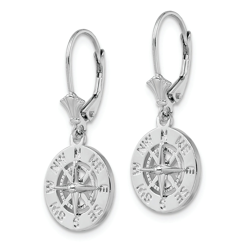 Sterling Silver Rhodium-plated Polished Mini Compass Leverback Earrings