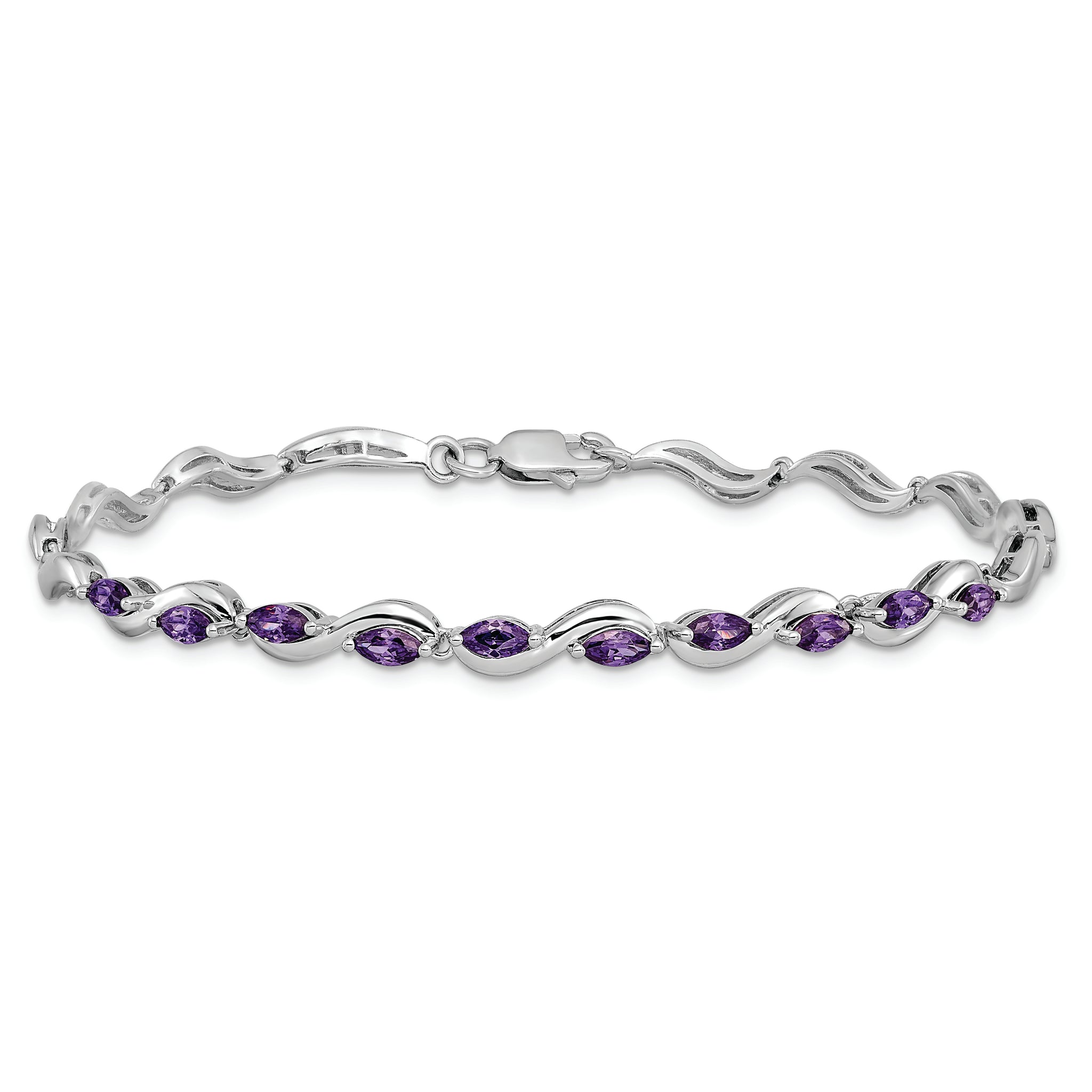 Sterling Silver Rhodium plated Purple CZ Bracelet