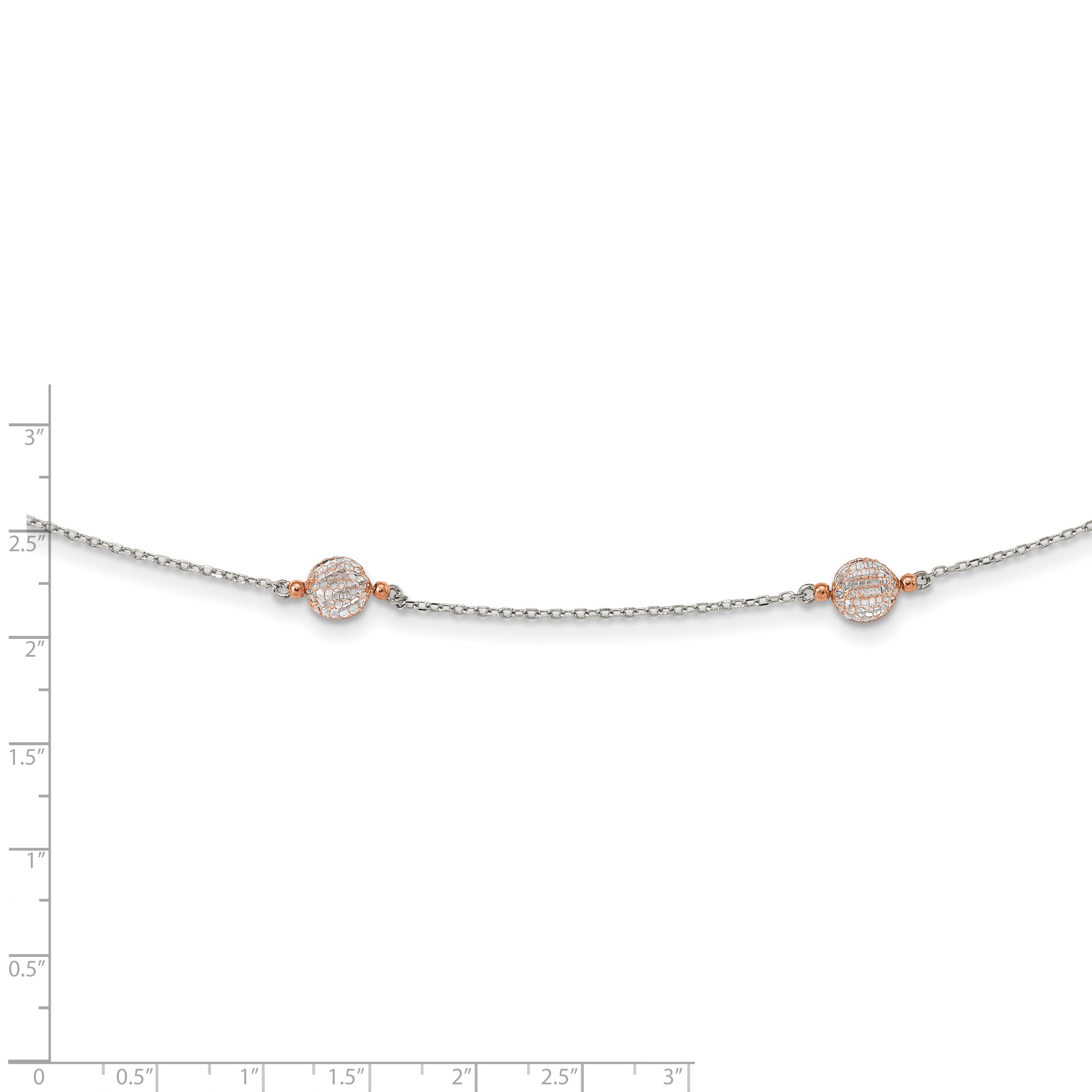 Sterling Silver Rhodium-plated Rose Tone CZ Stations w/2 in ext. Necklace
