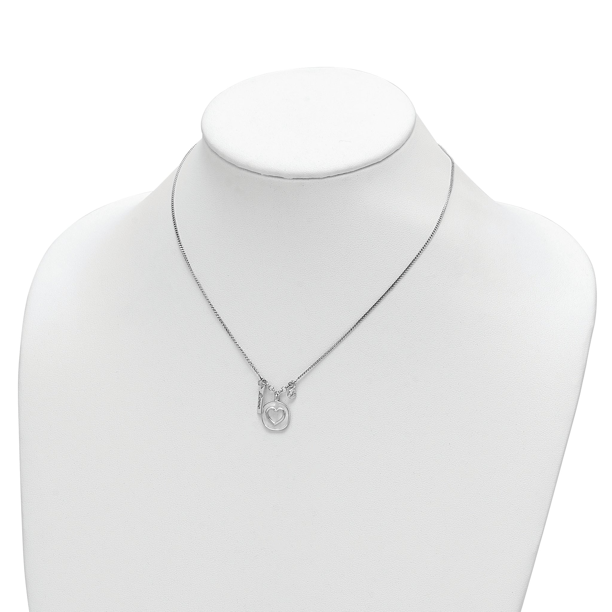 Sterling Silver Rhodium-plated Satin Heart/Love/CZ w/1.5in Ext Necklace