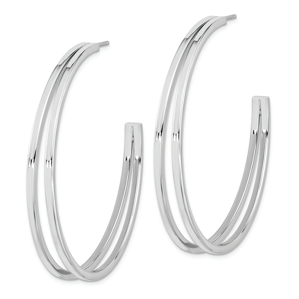 Sterling Silver Rhodium Plated Split Design Hoop Post Earrings