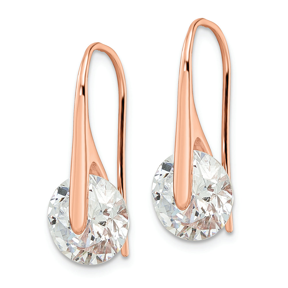 Sterling Silver Rose-tone Polished Round CZ Dangle Earrings