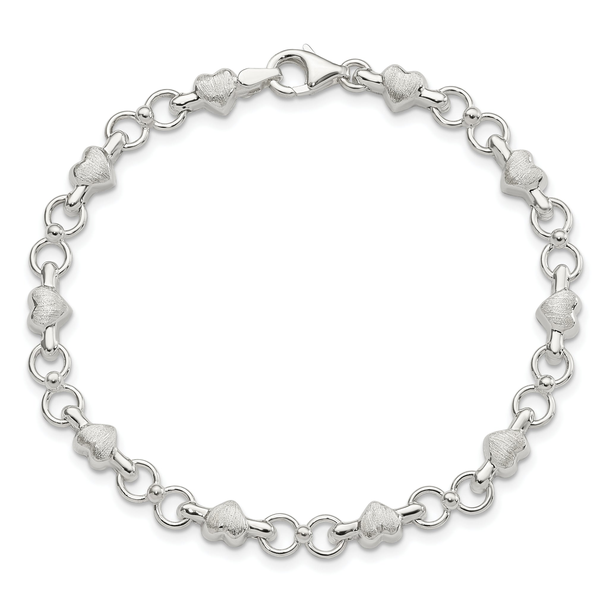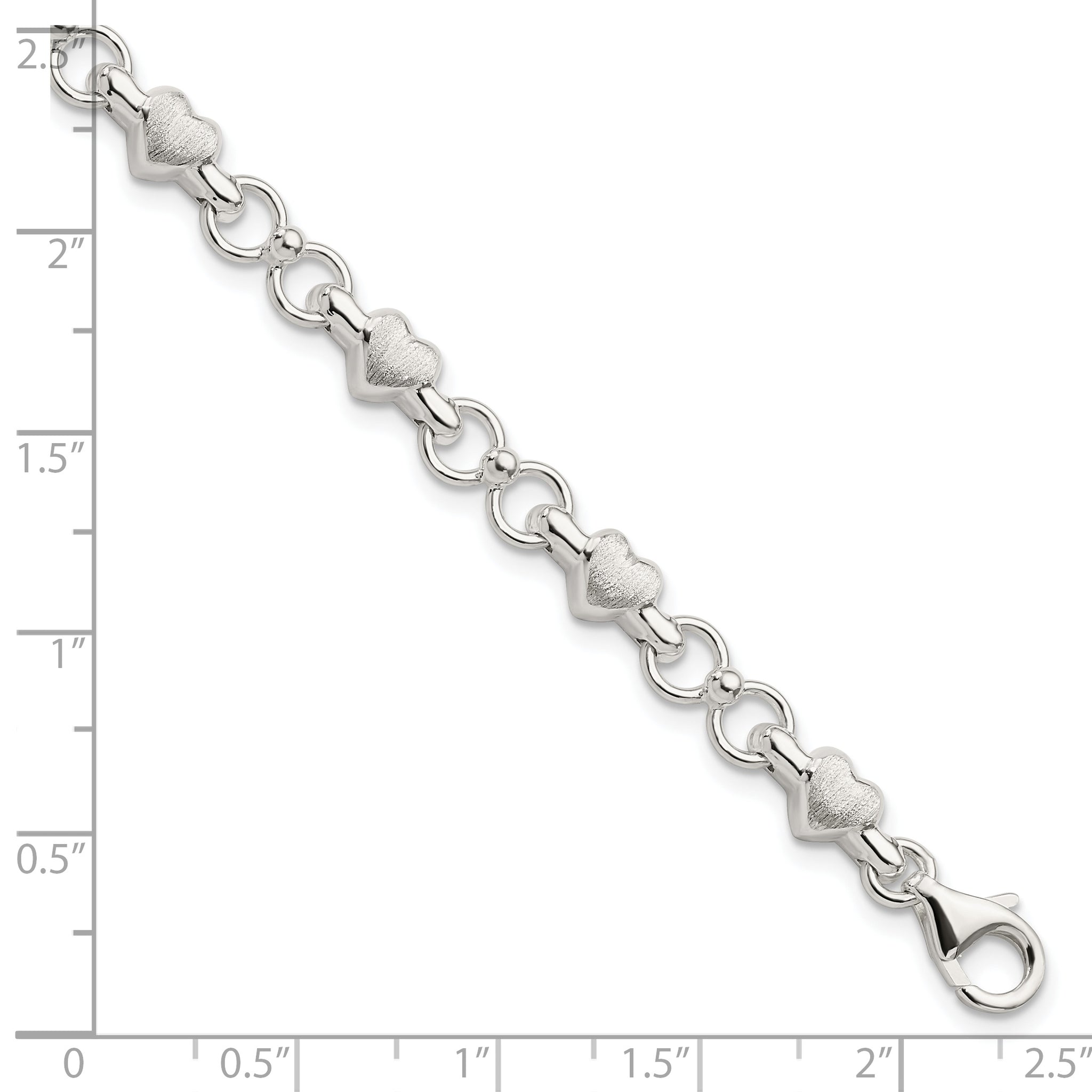 Sterling Silver Satin & Polished Heart Chain Bracelet